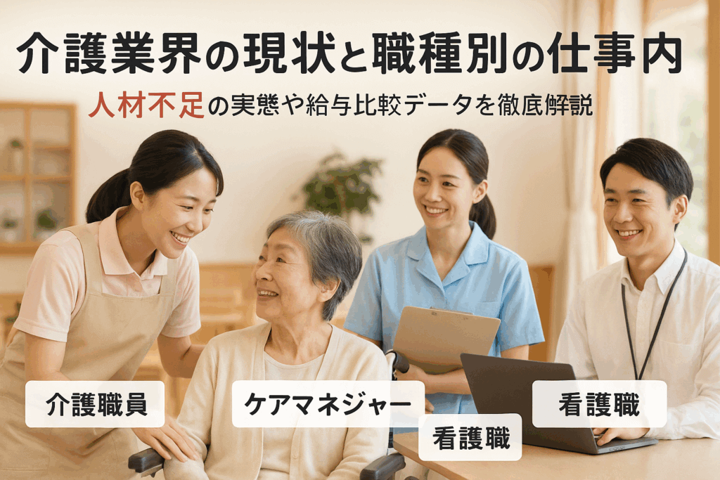 介護業界の現状と職種別の仕事内容・人材不足の実態や給与比較データまで徹底解説