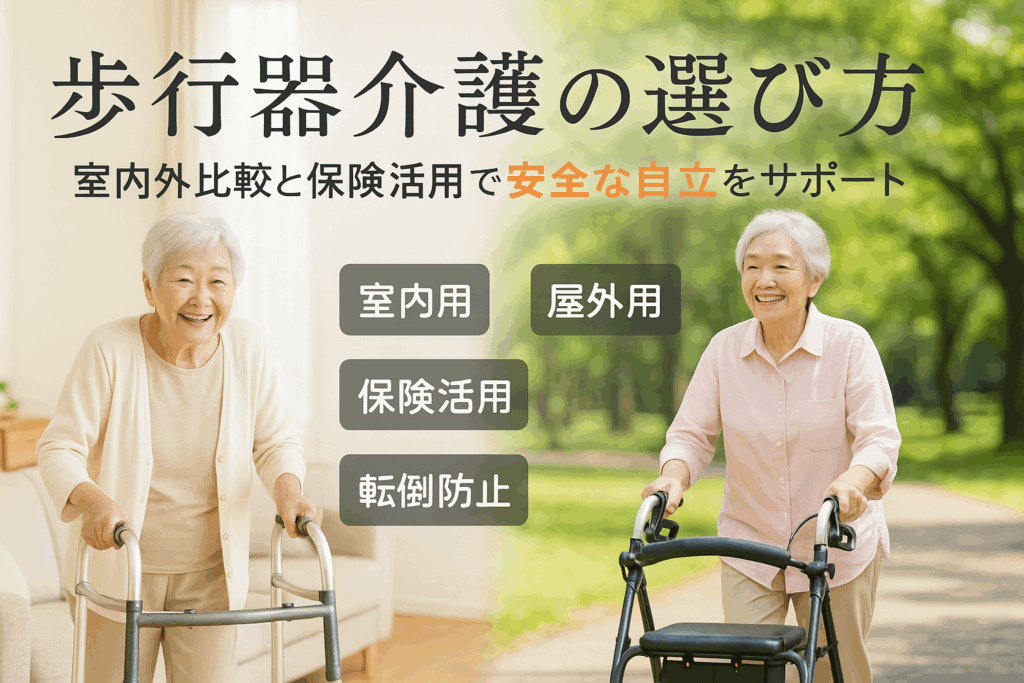 | 歩行器 | 体重支持と安定 | 固定脚または前輪、軽量折りたたみ | 体幹不安定、要支援〜要介護 | 室内中心 |